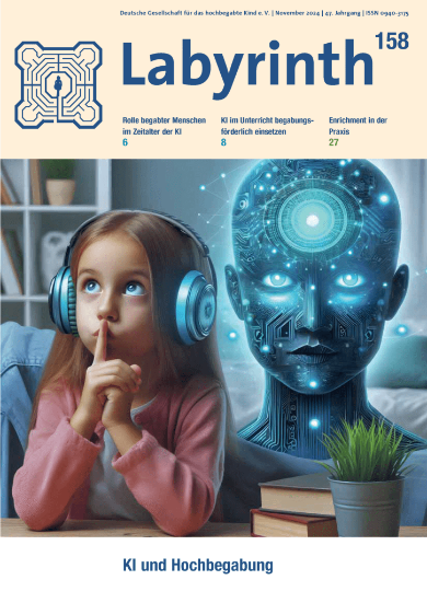 Erschienen in: Labyrinth, Magazin der Deutschen Gesellschaft für das hochbegabte Kind e.V. (DGhK), Ausgabe 158 „KI und Hochbegabung“, November 2024, Seite 14-15